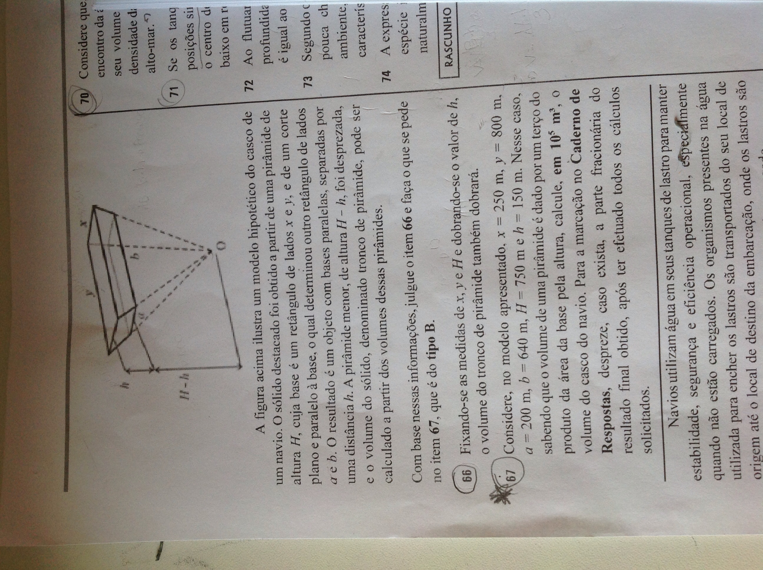 Alguém poderia me ajudar a realizar essas duas questões ? o meu resultado não está batendo com o certo... gabarito: 66-E e 67-244. tentei fazer por semelhança porém não deu certo e ??tbm tentei fazer os volumes separados mas não deu.... Me ajudem por favor