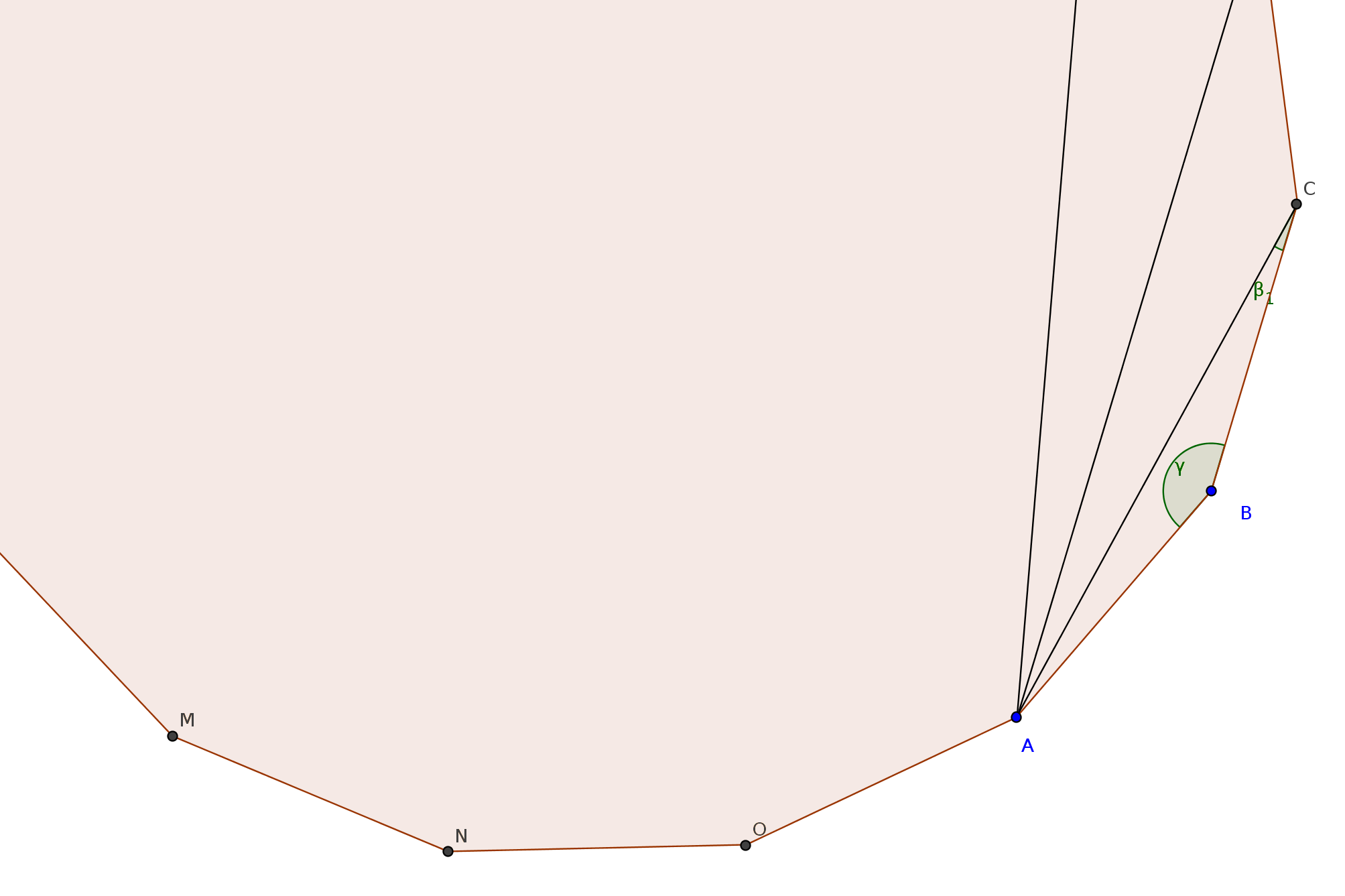 Pela nossa hipótese , \gamma = S_i / n    = \frac{(n-2)\cdot 180^{\circ}}{n} .
