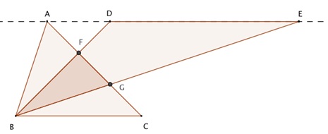 [Geometria] Na figura a seguir o segmento BC é paralelo a reta que contém os pontos A, D e E. Sabe-se que os pontos F e G dividem o segmento AC em três segmentos de mesma medida e que o segmento DE possui o dobro da medida de BC.