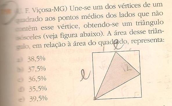 Então o percentual do triângulo em destaque é 100% - 62,5% = 37,5%