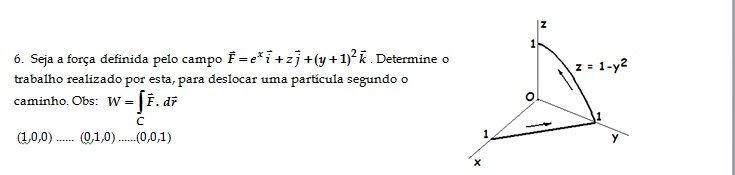 Determine o trabalho realizado por esta, para deslocar uma partícula segundo o caminho.