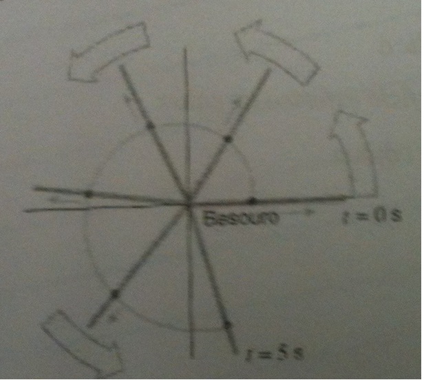 Conforme a figura abaixo, suponha que uma vareta com um dos extremos fixos no polo de um sistema de coordenadas polares gire no sentido anti-horario a uma taxa constante de 1Rad/s. No instante t=0 um besouro sobre a vareta esta a 10mm do polo e se movendo para fora ao longo da vareta com uma velocidade constante de 2m/s. Sabendo que a equacao que descreve o caminho percorrido eh: r=20+10, determine a distancia que o besouro percorre durante os 5 primeiros segundos..