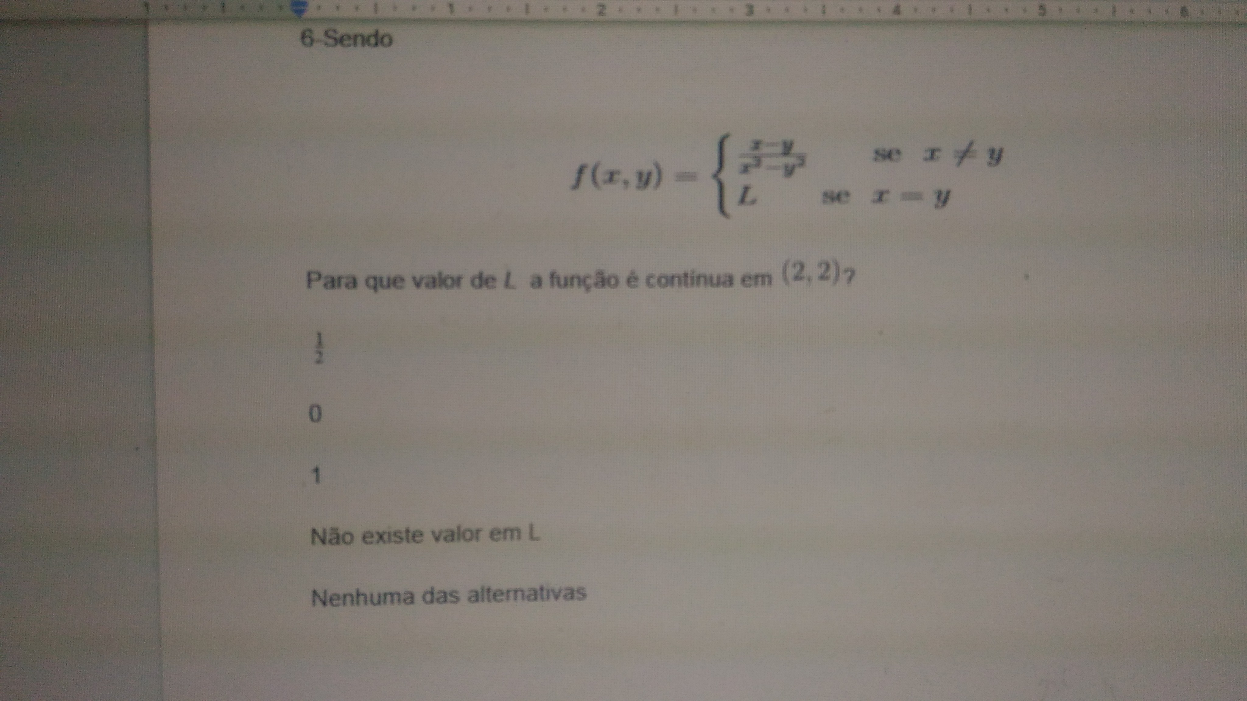 Agora me pego, realmente não sei o que o enunciado quer dizer com isso, parece que está falando do dominio da função, mas nesse caso a resposta seria "nenhuma das altern", ja que a função está definida para todo R² (todo x e y).