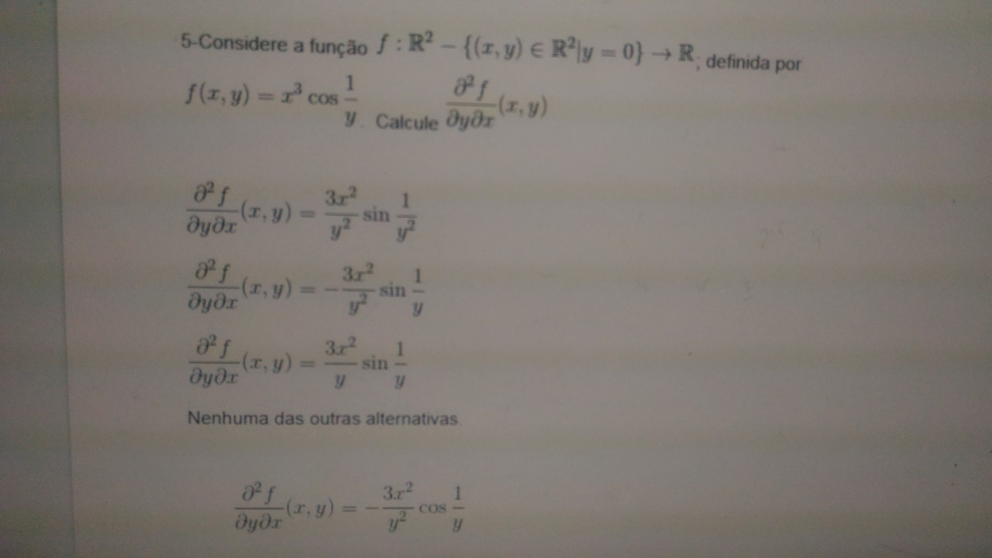 Boa noite fórum, tenho um problema de derivada parcial que não consigo resolver e peço a atenção de vocês para me ajudarem.
