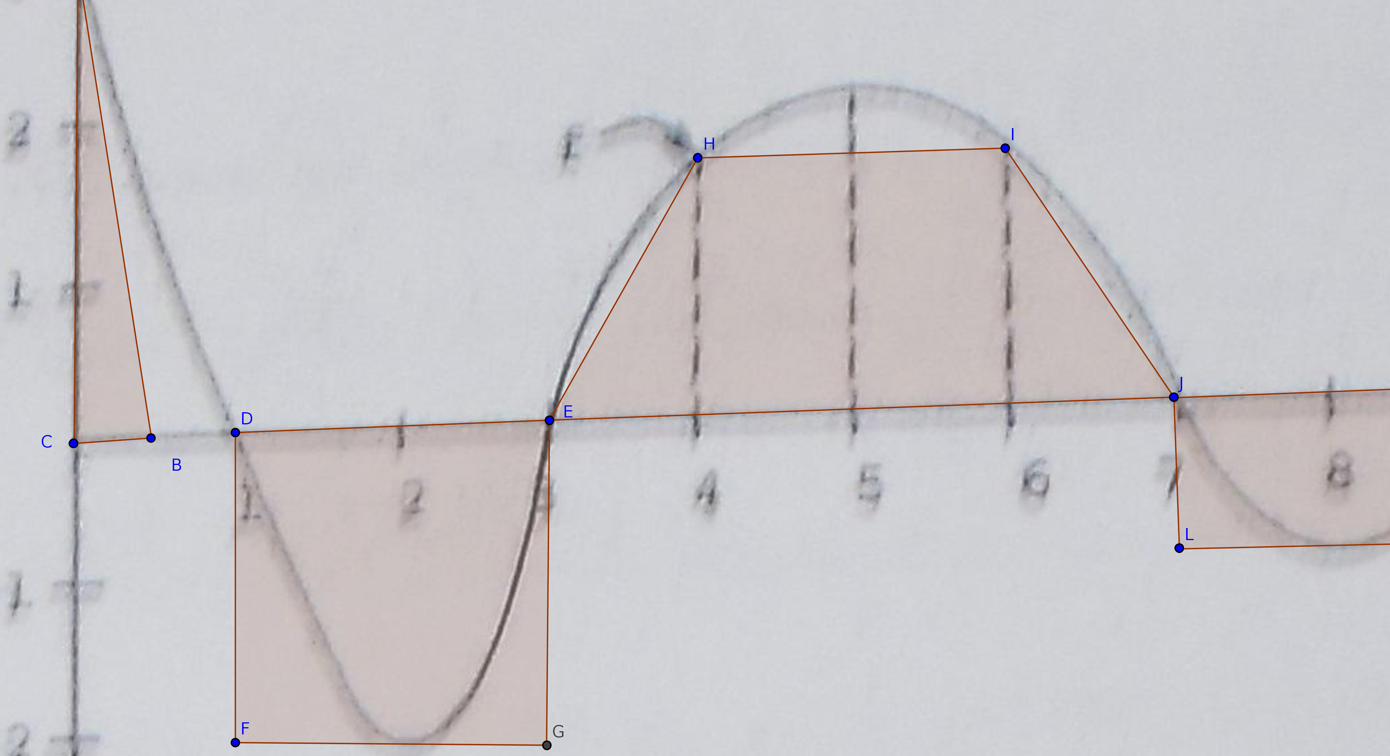 Para frisar o que estou dizendo vou deixar a imagem anexada , compare a integral com a área dos retângulos , triângulos e trapézios .