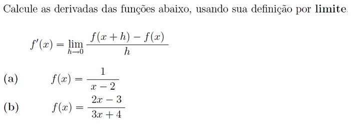 Para encontrar a derivada de uma função pela definição (dada), basta substituir... Veja: