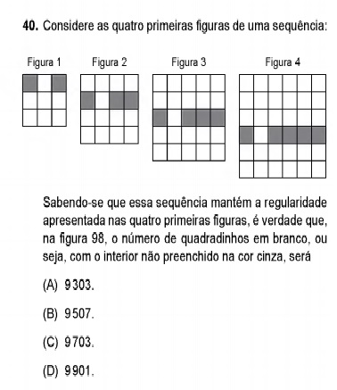 Portanto 98 figuras teremos um quadrado de lado 100 e com 100x100 = 10000 quadradinhos