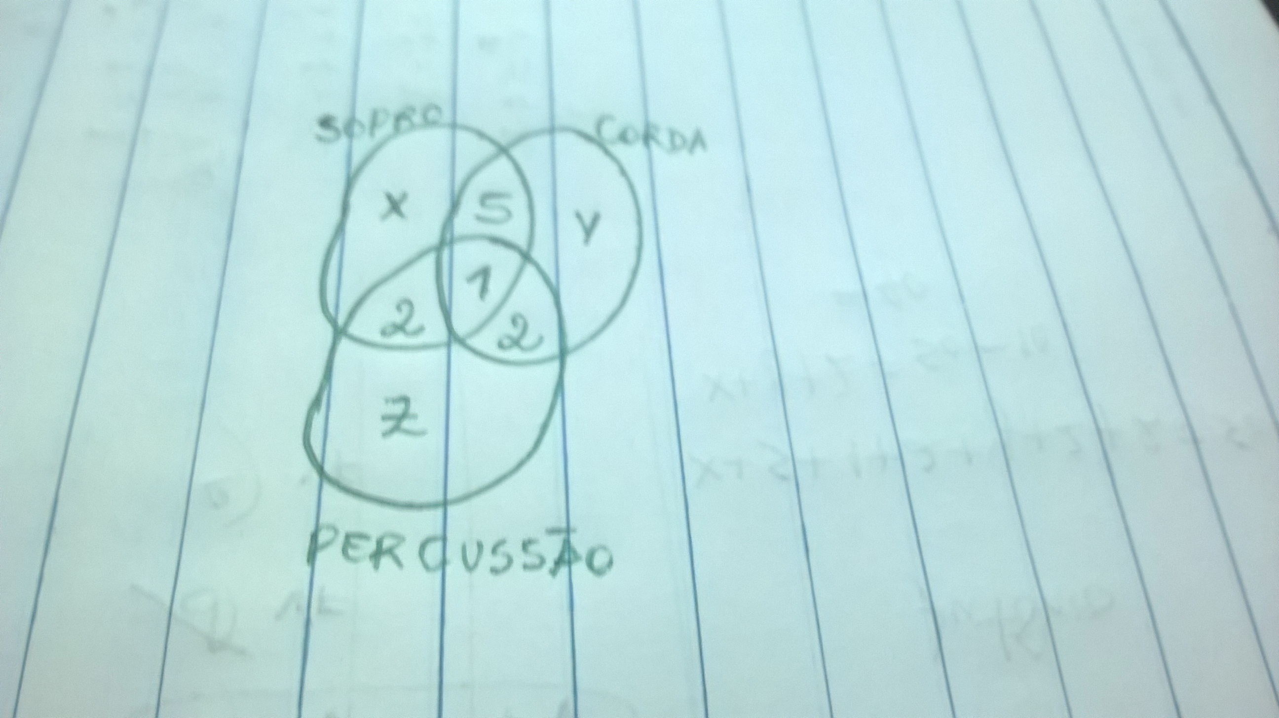 Uma orquestra é composta por 50 músicos, que tocam instrumentos de sopro, corda e percussão. Sabe-se que seis músicos tocam instrumentos de sopro e de corda, três tocam instrumentos de corda e percussão, e três tocam instrumentos de sopro e percussão. Sabe-se ainda que um músico toca os três tipos de instrumentos. Quantos músicos tocam apenas um único tipo de instrumento?