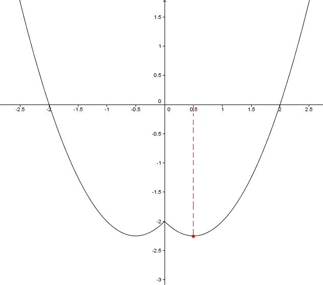 Pela observação do gráfico, pode-se identificar o gráfico parcial de duas parabolas.O gráfico parcial da parabola da direita é identico ao gráfico parcial da parabola da esquerda.Conclui-se que qualquer que tenha sido a transformação a que a função tenha sido sujeita, a função trasformada trata os valores negativos de x da mesma forma que os valores positivos de x.Qual é a operação matemática que devolve valores positivos independentemente dos valores introduzidos?