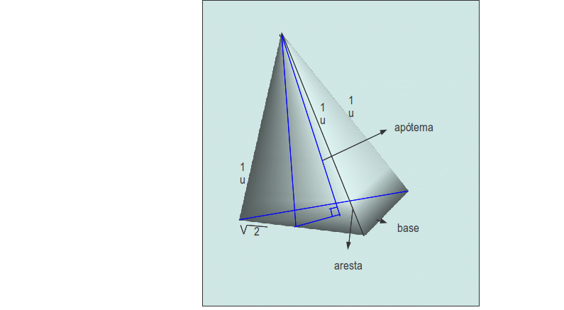 com isso e sabendo que as faces de cada piramide é dada por um triangulo retangulo de lados 1u e hipotenusa de