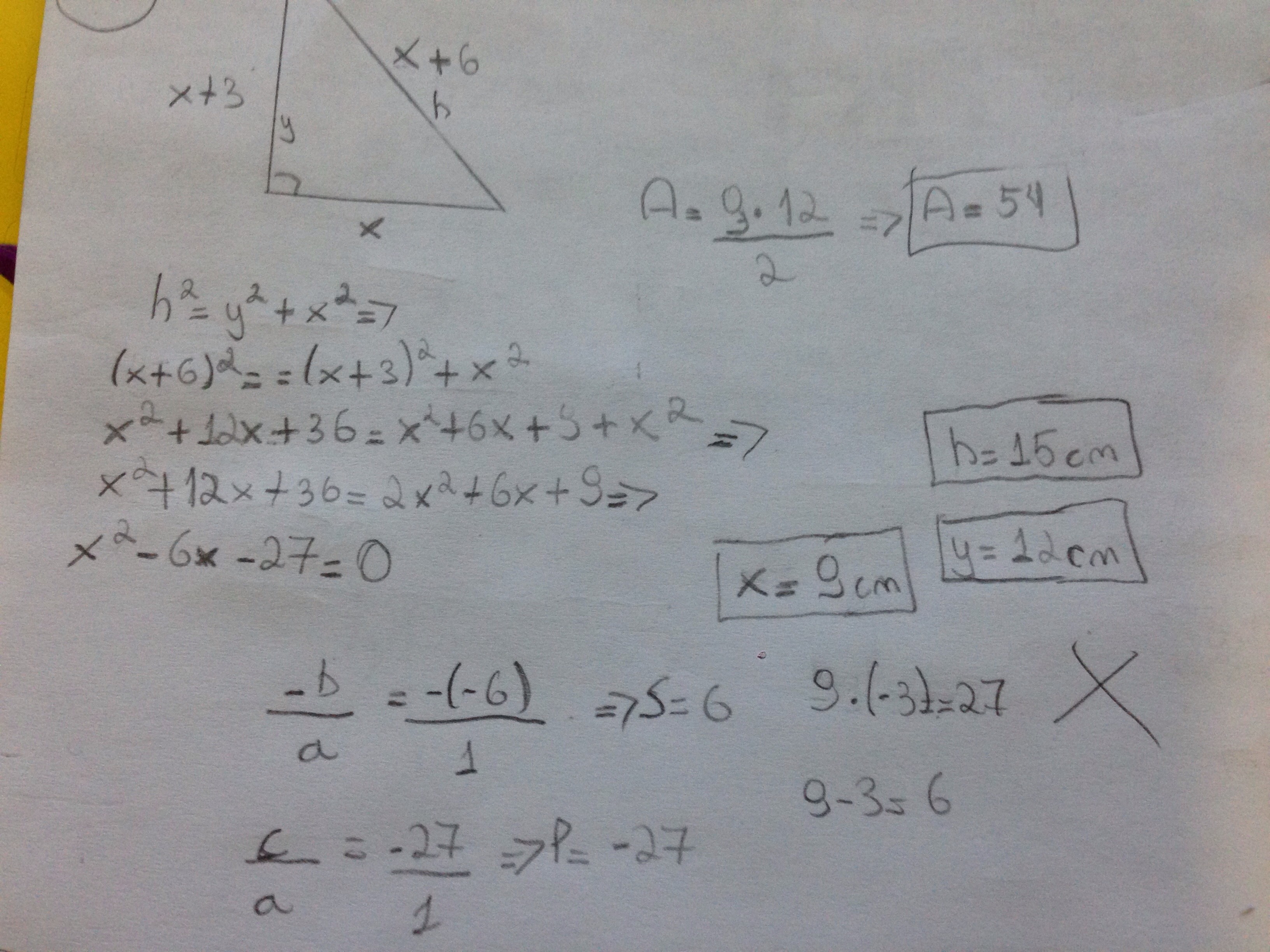 Galera a questão é a seguinte: Num triângulo retângulo a hipotenusa mede 3 cm a mais que o maior cateto e este mede 3 cm a mais que o menor cateto. Qual é, em cm², a área desse triângulo?