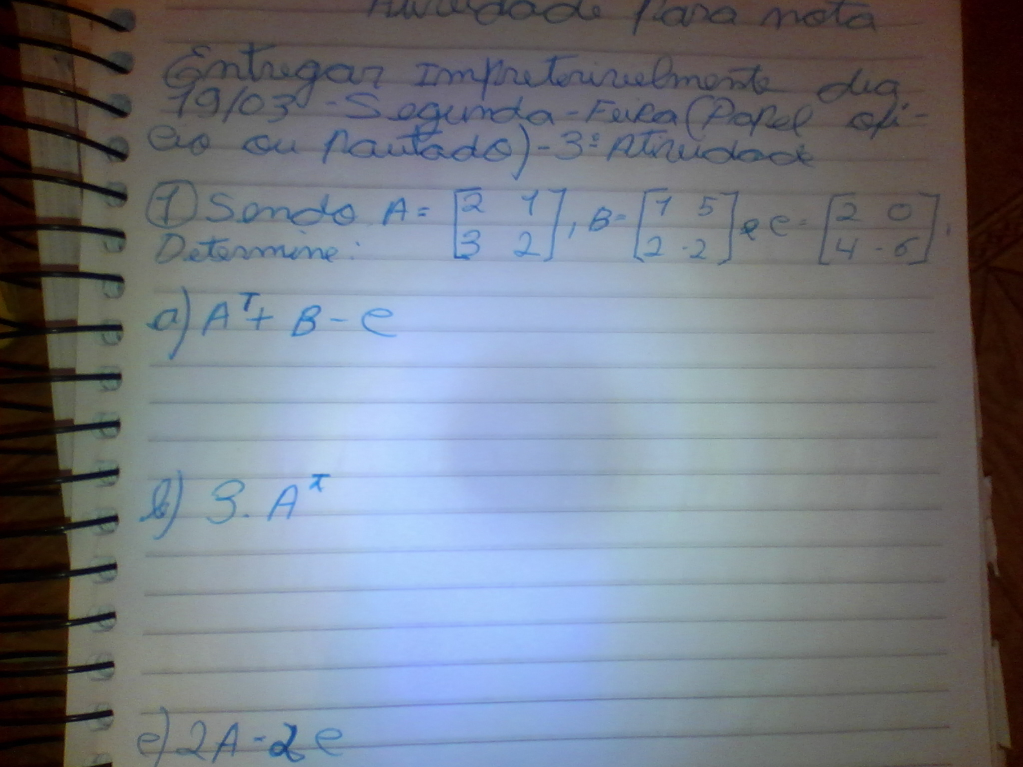 ex1:NAO pode ,pois a primeira tem 2 colunas e a segunda tem 3 linhas