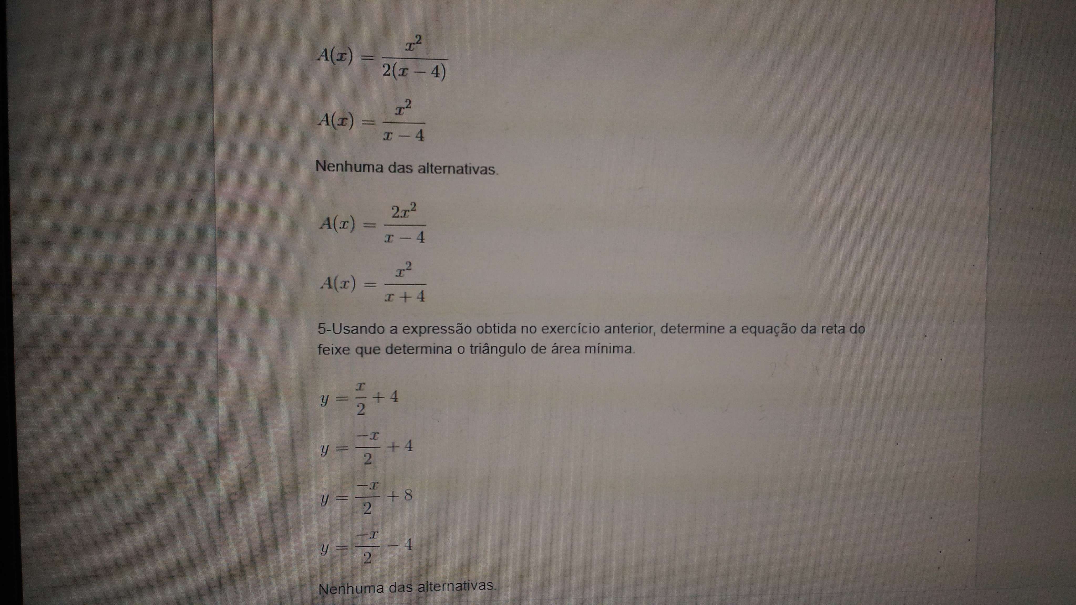 3) As alternativas aqui abordam a concavidade da curva. Como a derivada segunda f ''(x) = 8/[3(x-2)³] não possui zeros (verificar!), ou seja, possíveis inflexões da curva, vamos dividir a analise na sua indeterminação (x=2).