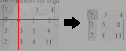é o determinante da matriz inicial após eliminarmos tanto a coluna quanto a linha das quais o elemento