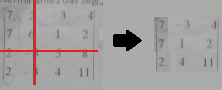 onde "i" representa a linha desse elemento e "j" sua coluna, podemos calcular o det como segue:
