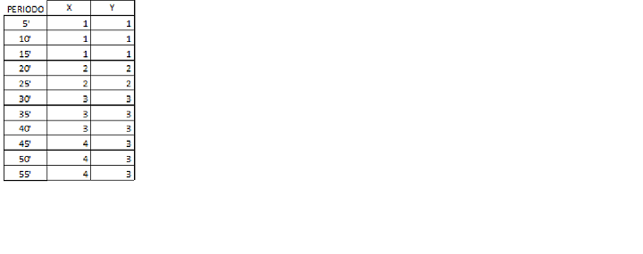 X é o conjunto dos numeros dos chutes a gol do time A, Y é o conjunto dos números das defesas difíceis do time B.