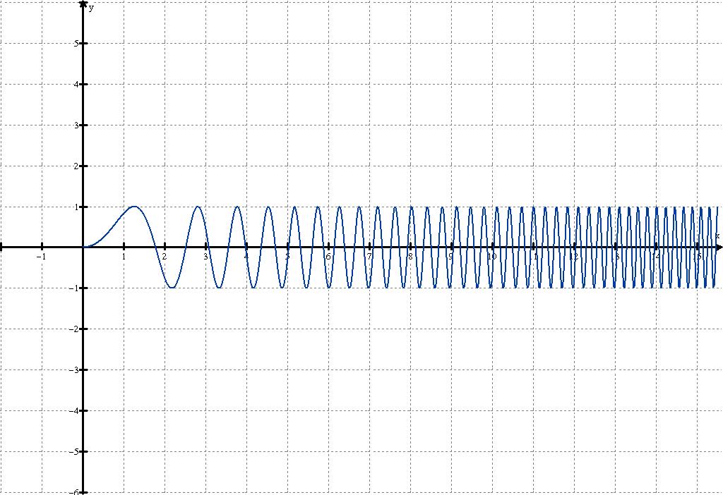 ficará variando de -1 a 1 quando x cresce. E especialmente nesta função, quando ela tende a mais infinito ela oscila mais intensamente ainda. Fiz uma imagem pra ficar mais claro...