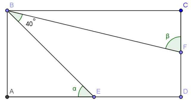 No retângulo abaixo, o valor, em graus, de(por favor, 1 significa alfa e 2 significa beta, é que eu não sei escrever esses símbolos no PC) 1 + 2 é: