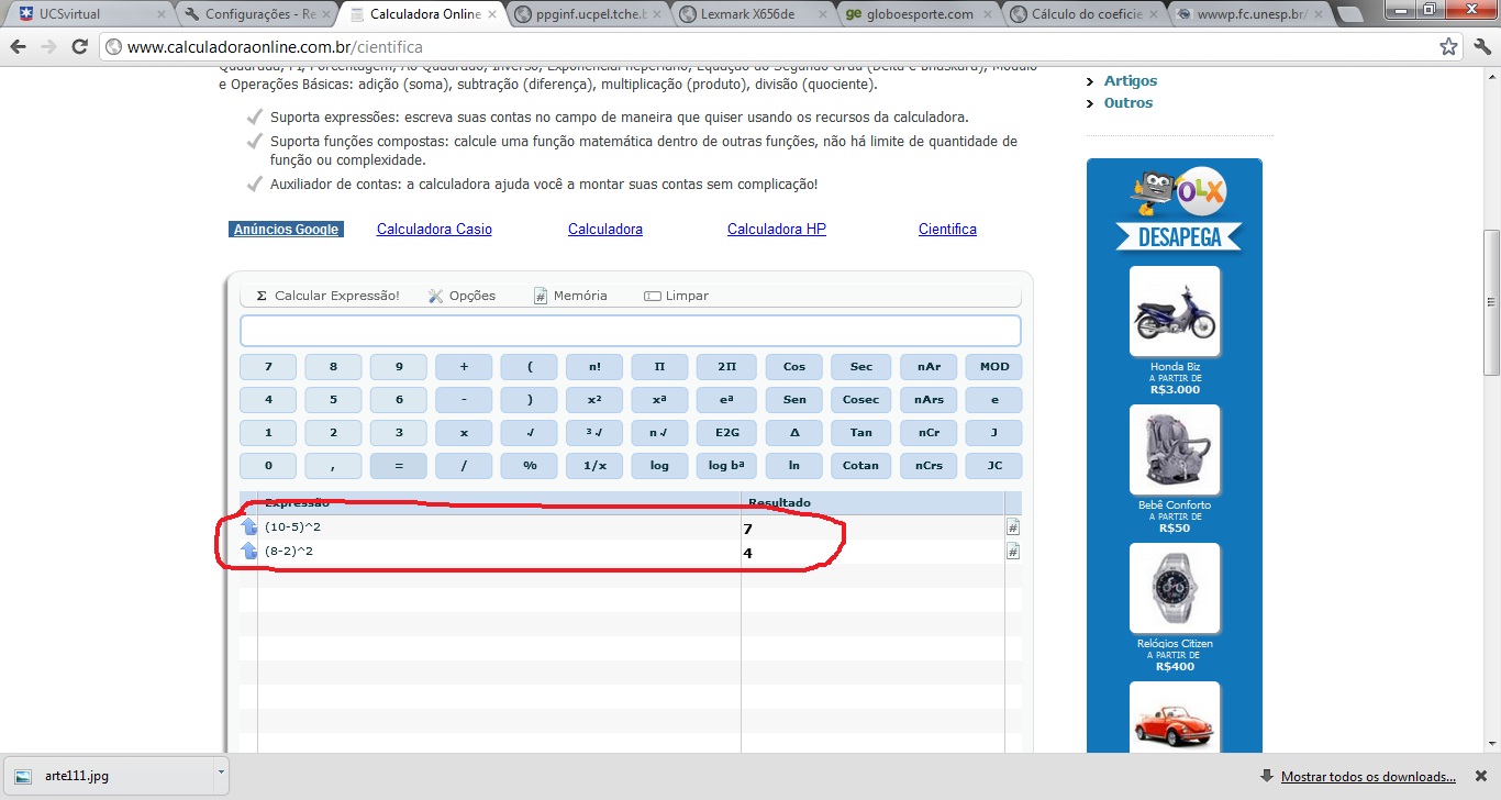 Só sei eu fiz a conta errada na calculadora cientifica então.Dá uma olhada no anexo.