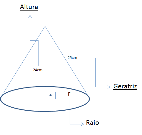 Determine o diametro da base de um cone reto de 24cm de altura sabendo que sua geratriz mede 25cm.